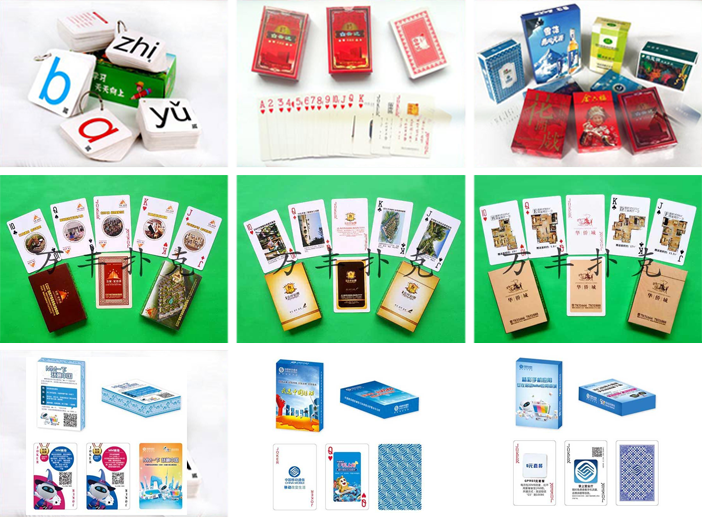 國內銷售的撲克有:廣告類、禮品類、卡通類、食品飲料類、酒水yancao類、銀行保險類、房產裝飾類、家電通信類等18個種類2000多個品種。